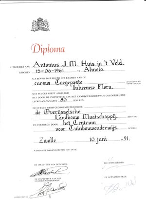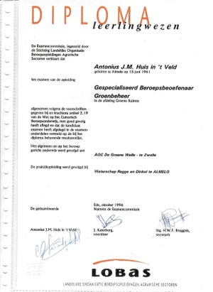 In die periode [jaren `80] veel ervaring opgedaan met ecologisch beheer. In de daaropvolgende fase heb ik mij verder gespecialiseerd in bomenbeheer [jaren `90] Deze expertise heb ik in de praktijk vaak gecombineerd met specifieke kennis over inheemse flora. Ik ben dan ook in het bezit van het diploma 'Toegepaste beplantingsleer inheemse flora`